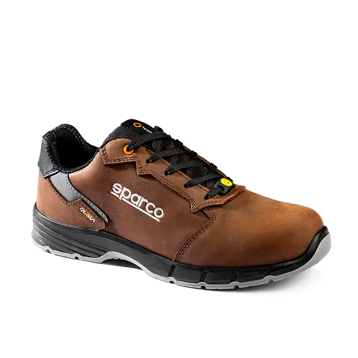 Νέα παπούτσια ασφαλείας Sparco Targa NINO ESD S3S SR FO 2025 από λεπτό λείο δέρμα ανθεκτικό στη διείσδυση του νερού.